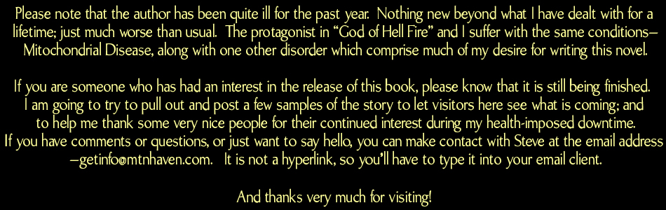 Here are two samples from "God of Hell Fire". Like everything, it takes me a while to change this web page.